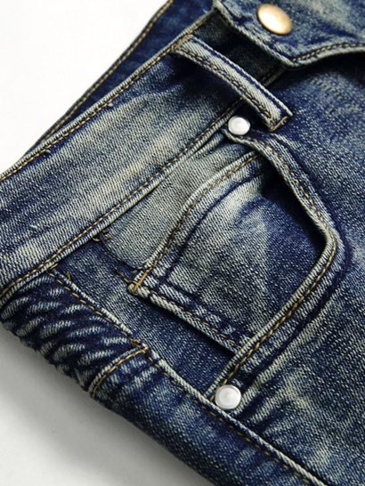 Faded Wash Stitching Patch Vintage Jeans
