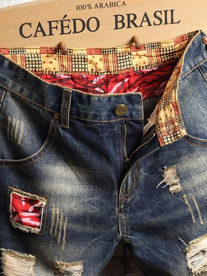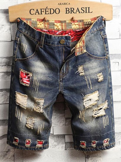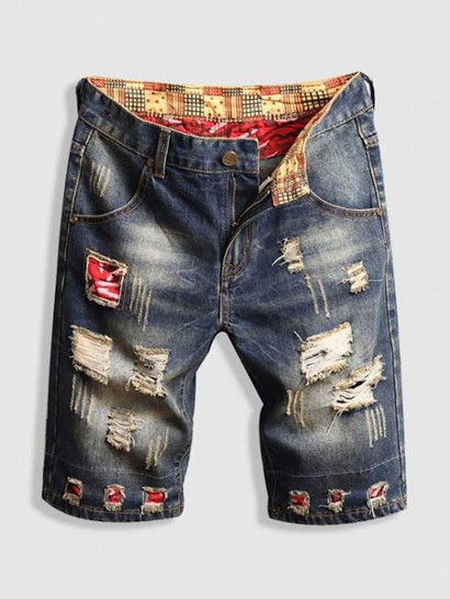 Be the first to review “Patchwork Design Destroyed Denim Shorts”