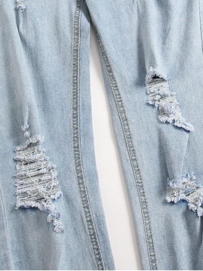 Ripped Light Wash Distressed Decoration Casual Jeans