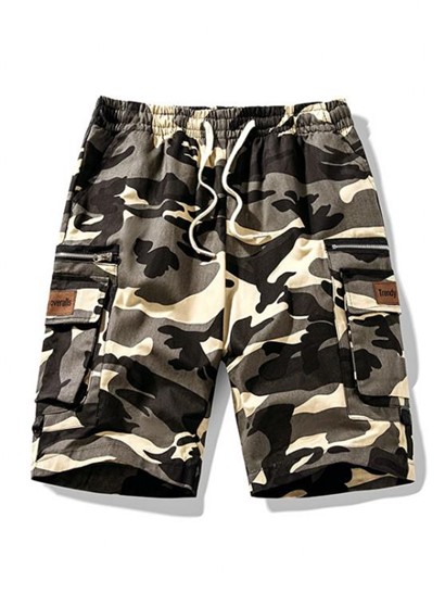 Zipper Multi-pocket Design Drawstring Cargo Shorts